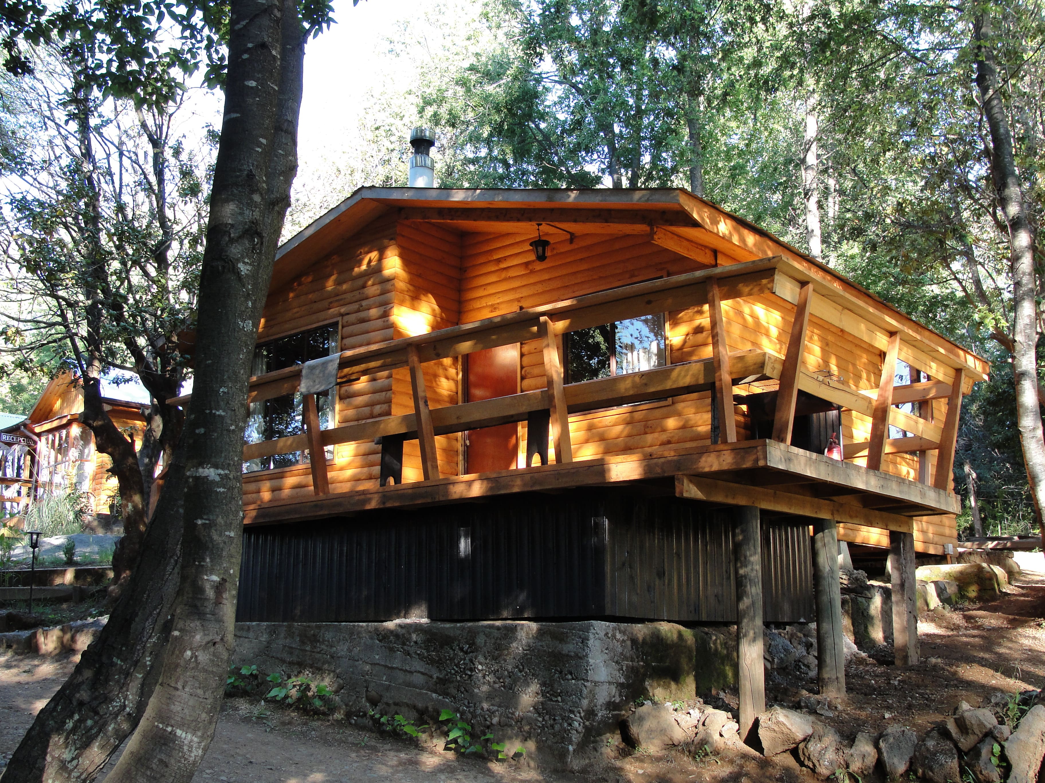 Cabaña completamente equipada para 7 a 9 personas, con 2 dormitorios y 2 baños, cocina americana, living comedor y terraza techada para hacer asados. Esta cabaña esta implementada para recibir minusvalidos