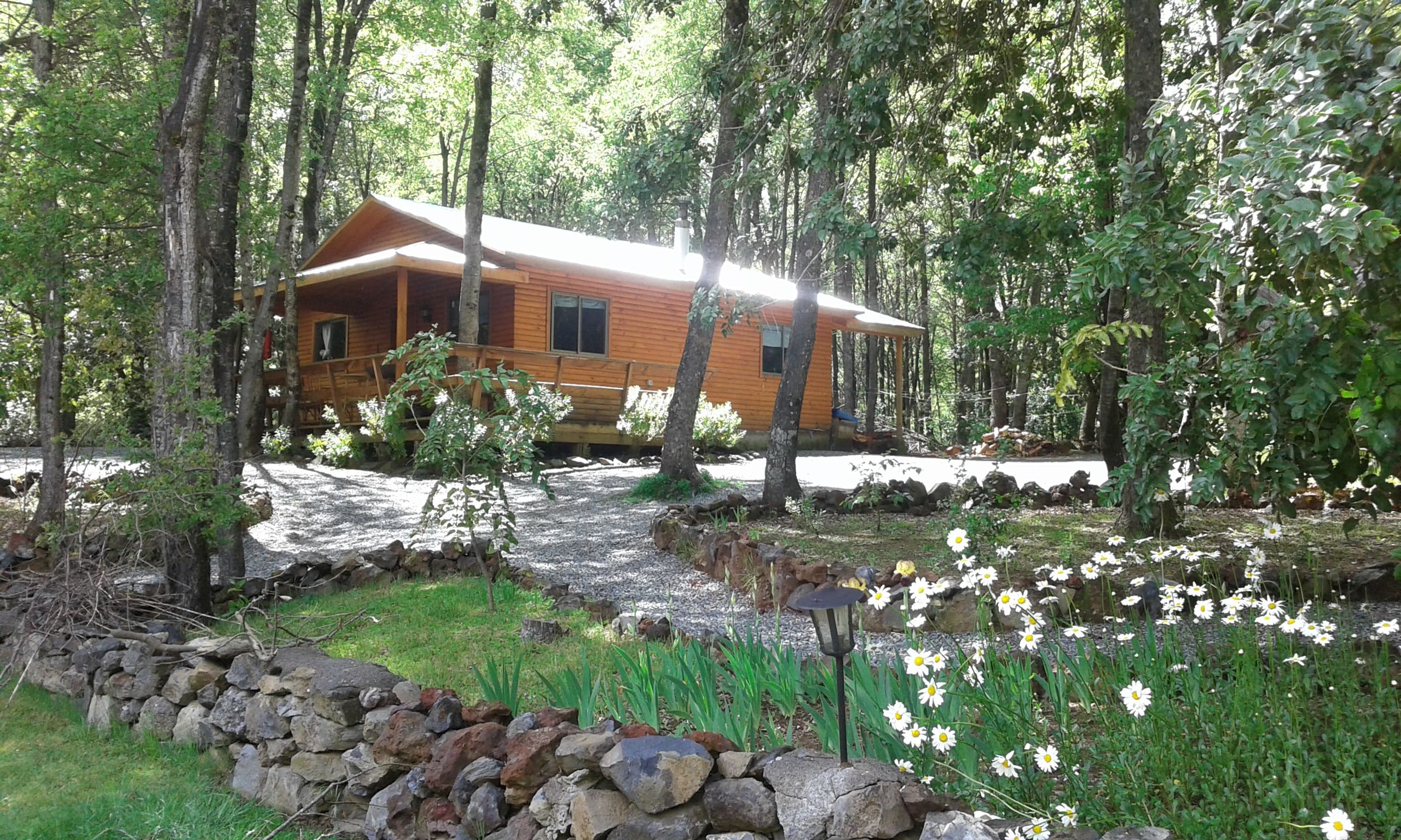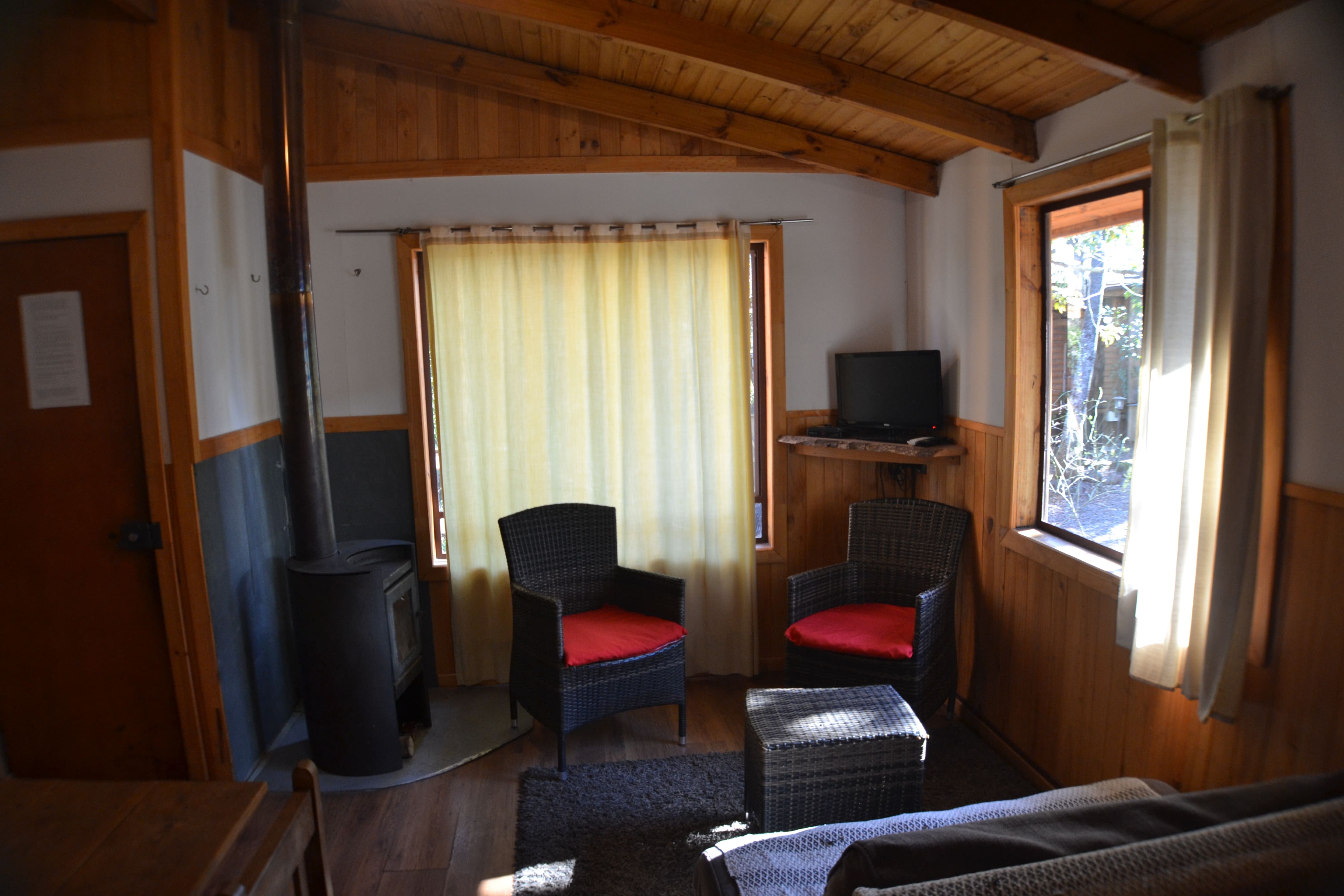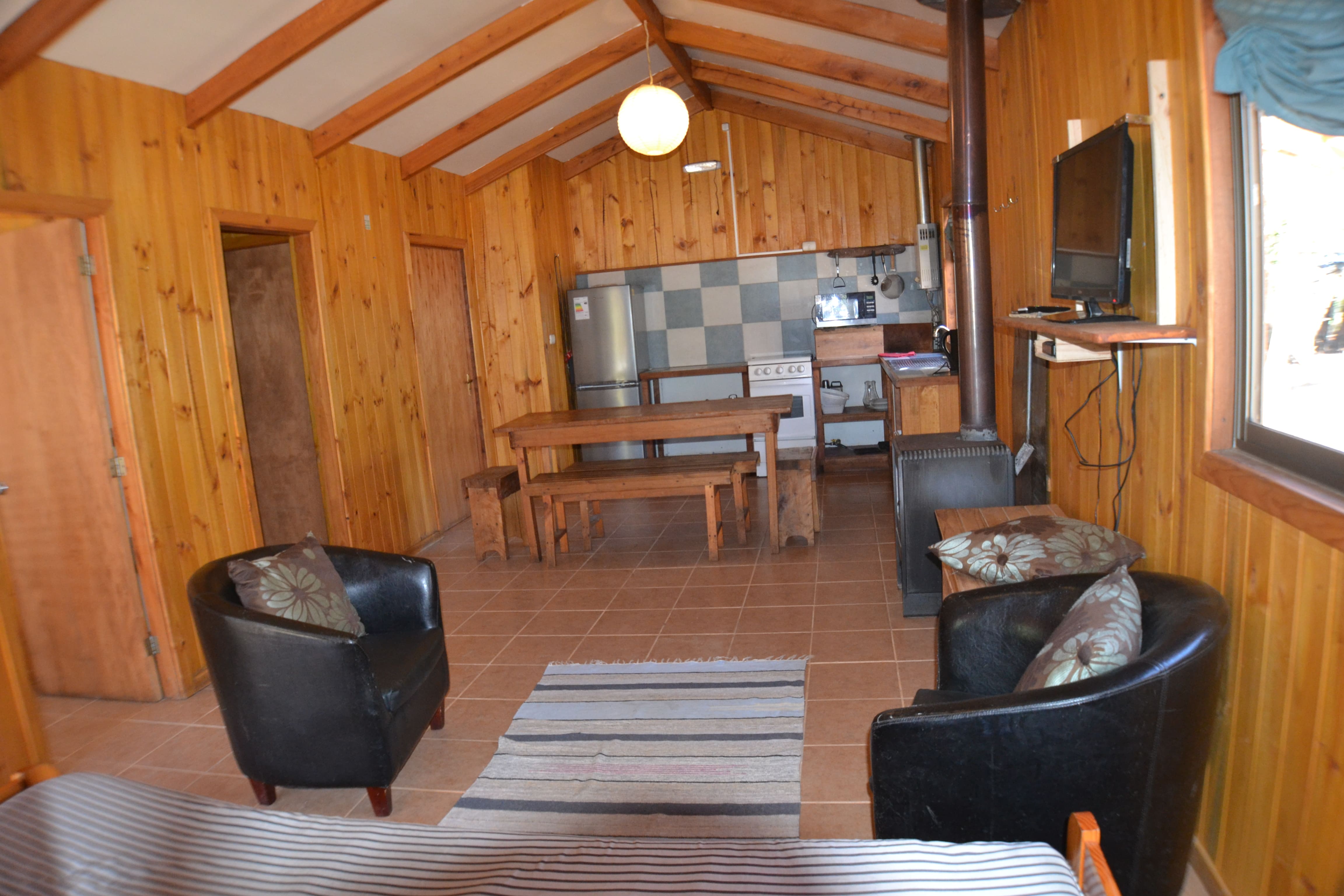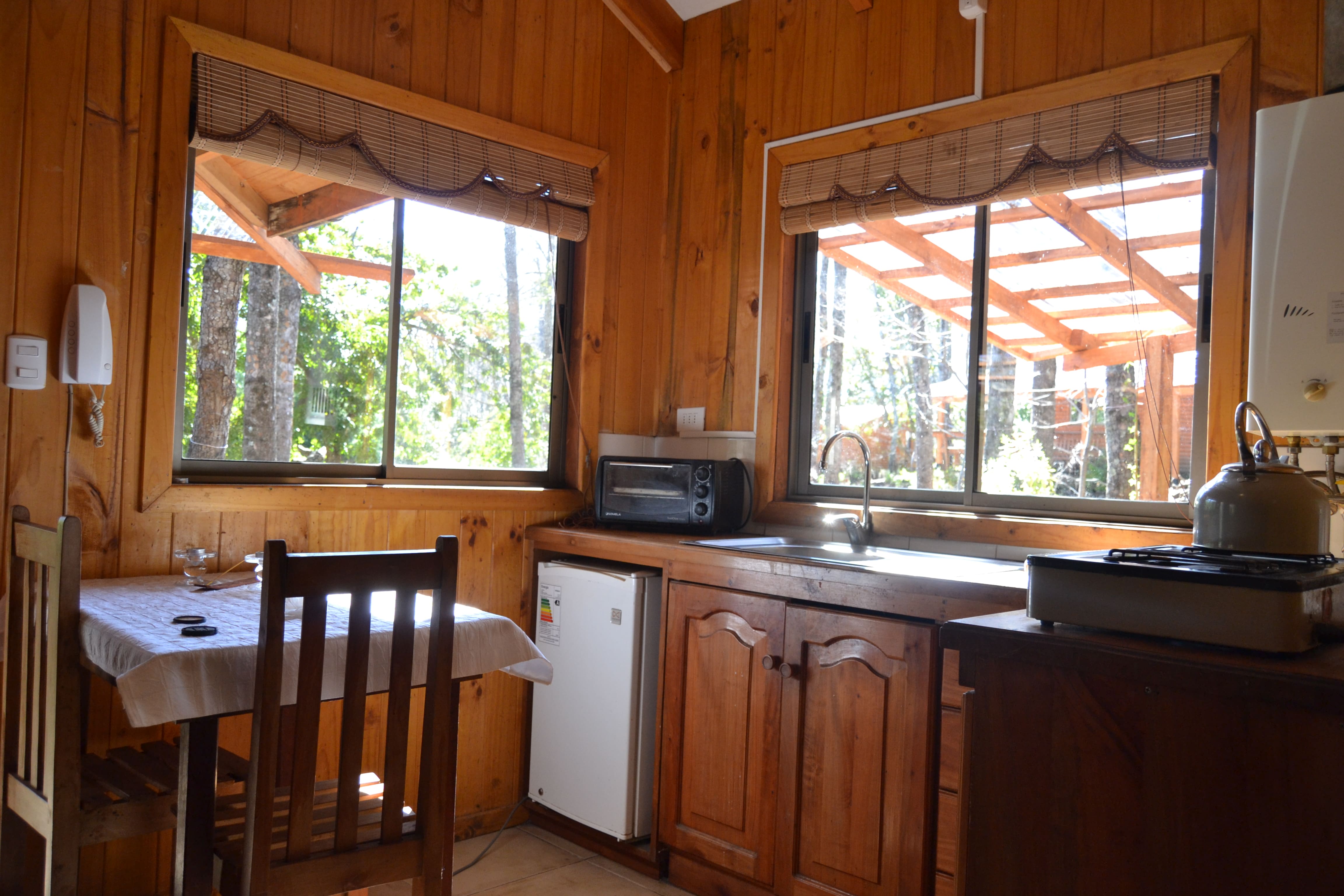 Cabaña completamente equipada para 4 personas, 2 dormitorios, cocina, living comedor, terraza techada para hacer asados